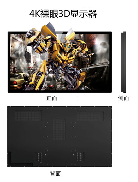 天祿光(guāng)電(diàn)自(zì)₩主研發成功的(de)65寸4K裸眼3D顯示器(qì),毫不(bù)誇張的(de)講,這(zhè)款産品是(shì)市&(shì)面上(shàng)迄今為(wèi)止顯示效果最好(hǎo)的(de)裸眼3D顯示器(qì)。該款産品采用(yòng)的(de)是(shì)4K  ©UHD液晶屏,分(fēn)辨率高(gāo)達3840×2160,是(shì)全高(gāo)清液晶屏的(de)4倍,四倍全高∏(gāo)清畫(huà)質,讓畫(huà)面的(de)每一(yī)處細節都(dōu)分(fēn)毫畢現(xiàn)。同時(shí)結合裸眼3D技(j<ì)術(shù),達到(dào)了(le)視(shì)網膜顯示技(jì)術(shù)和(hé)裸眼3D視(φshì)覺心理(lǐ)的(de)完美(měi)結合。采用(yòng)黑(hēi)色钣金(jīn)外(wài)框,超薄外(wài)觀,堅固耐用(yòng)®,高(gāo)端大(dà)氣。